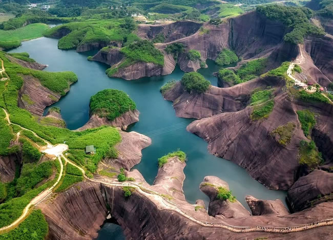 抵達(dá)后,前往郴州抖音最火網(wǎng)紅打卡地【高椅嶺】(游覽時(shí)間約3.5小時(shí))。車覽【馬皇丘大峽谷】,峽谷原為一條小路穿行而過,現(xiàn)為一條漂亮的馬路,卻造就了另一種景觀,其中絕壁上的酷似女性私處【陰元石】更是丹霞景觀一絕。而后徒步高椅嶺,欣賞絕美之丹霞碧水,【巨蜥臥水】。先是歷經(jīng)【瓜石頸】之天梯險(xiǎn)境,再是近距離感受【羊牯石】景區(qū)之絕美。從高處往下鳥瞰瓜石頸,一條清澈美麗的“天河”蜿蜒穿行在丹霞地貌之間,或?qū)捇蛘禐榇笥^,從羊牯石景區(qū)原路返回至瓜石頸,沿另一條石級(jí)自上而下欣賞水中“巨蜥”形神兼?zhèn)渲^美,驚于大自然的造化與鬼斧神工。這一片丹霞碧水,因?yàn)榈は嫉孛仓苓呌衅恋乃蔹c(diǎn)綴,美得一塌糊涂。