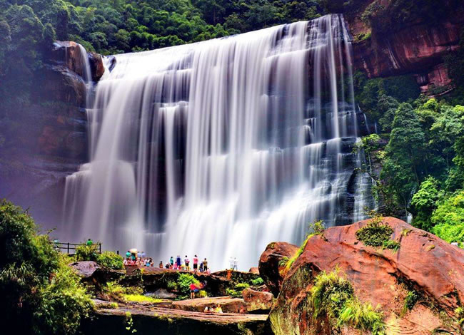 早餐后前往當(dāng)?shù)厣鐣唐妨闶燮髽I(yè)自由活動并領(lǐng)精美紀(jì)念品,名特產(chǎn)品(較為著名云上赤水泰和乳膠、逸可瑞斯乳膠等,主要銷售乳膠制品),自由活動后前往【赤水大瀑布】欣賞美譽(yù)中國的簾狀瀑布典型代表中洞瀑布。觀氣勢恢弘的赤水大瀑布(寬81米,高76米),是亞洲最大的瀑布,也是“世界丹霞第一瀑”,瀑水從懸崖絕壁傾瀉而下,猶如萬馬奔騰,聲如雷鳴,水霧彌漫,陽光下時見彩虹繽紛,在特定的觀景石上,奇妙的佛光環(huán)隨人移動,一人一環(huán),美不勝收。自由活動后乘車前往【白馬溪景區(qū)】(此景點(diǎn)為旅行社贈送景點(diǎn),若時間緊湊無法前往請各位旅客諒解,贈送景點(diǎn)不予置換或退費(fèi)),(白馬溪景區(qū)內(nèi)有玻璃橋、旱滑道等娛樂項(xiàng)目,客人可根據(jù)自身情況自愿選擇自己喜歡的項(xiàng)目參加,報價不含娛樂項(xiàng)目)赤水白馬溪景區(qū)是赤水唯一家主題景區(qū),景區(qū)集有赤水旅游的5大旅游元素;瀑布景觀、丹霞景觀、竹林景觀、石斛觀光、以及活化石桫欏樹。景區(qū)原生植被繁茂,景色怡人,環(huán)境絕佳。是旅游觀光的絕佳勝地,晚餐可自費(fèi)品嘗(苗家風(fēng)情晚會120元/人),同時觀賞苗家印象激情互動篝火晚會,或自由活動。酒店休息。